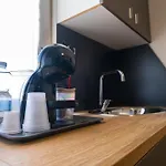 The rooms overlook the city and feature a flat-screen TV with satellite channels along with a mini-fridge-bar, coffee and tea making facilities. They are appointed with an oven and kitchenware. Offering a bidet, a separate toilet, and a shower, the bathrooms are also fitted with a hairdryer and shower caps.